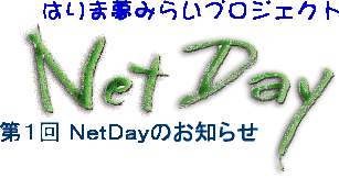 西播磨科学公園都市のまちびらき事業の一環として、西播磨地域の39の 小学校のこどもたちが自由にホームページを作り、インターネットで情報発信をしました。 ここでは、その成果を展示し、またインターネットを使って自由に見ることが出来ます ☆ 当日は、会場に十分な駐車スペースが確保できませんので、 自転車又は、同乗の上ご参加ください。 お問い合わせ先 はりまインターネット研究会事務局 〒670 姫路市西今宿三丁目6−3 TEL 0792-95-2702 FAX 0792-94-6552 E-mail:kotatsu@memenet.or.jp E-mail:hoooka@oss.co.jp E-mail:sio@memenet.or.jp