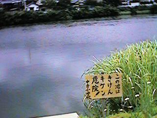 There is a pond back of our school. Signboards are standing. Long time ago, a little child drowned in this pond. An old man who rescued the child from drowning makes a signbord every year. He wishes nobody drown. This year he broght us some wood boad, and we made this signboard ( in left picture ). Why don't you stop playing near the pond. ( by Tomoyo Sugahara ) This pond named Nishi-ike. The message of this signboard was thought by Hitoshi Yasusaka and written by Rie Maeda. ( by Kazuko Utsumi ) We made signboard in our school and they are standing around the pond. This picture shows one signboard. ( by Emi Kawakatsu ) 2years ago, water was removed from this pond. I sometimes dropped a ball there. When I tried to take the ball, my legs were sank in soft soil. But I took my ball. ( by Nami Adachi ) |