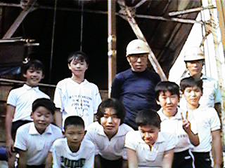 今、学校の西の水田の中に巨大な鉄塔が建っていて、温泉を掘っています。作業中のおじさんにインタビューすると、