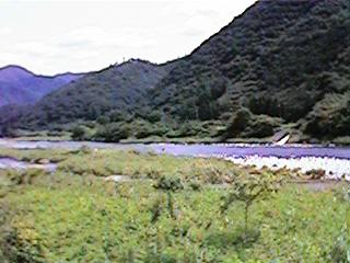 遠くからつり大好き人間が、朝早くから川に入って、楽しんでいま
